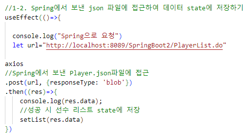- 통신 성공 시 Spring에서 응답한 선수정보(res.data)를 선수리스트 state에 저장하기