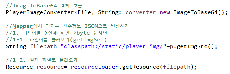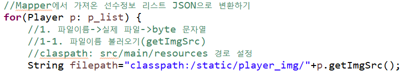 5)JsonObject에 이미지경로가 byte문자열로 변환된 선수정보 담고 return하기