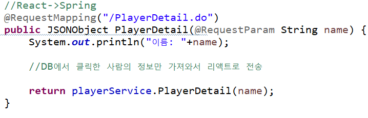 3. Spring에서 React에서 보낸 이름에 해당하는 선수정보만 보내기(JsonObject)