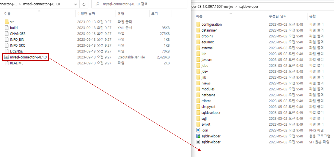- Mysql Community 다운로드-sqlDeveloper 폴더에 넣기
