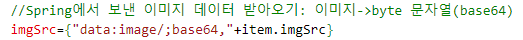 - Spring에서 보낸 byte 문자열로 변환된 이미지 데이터를 출력