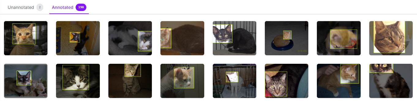- 개, 고양이 얼굴 Bounding BOX→분류(cat/dog) save(Enter)→다음 사진(→ 방향키)