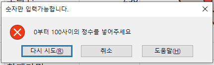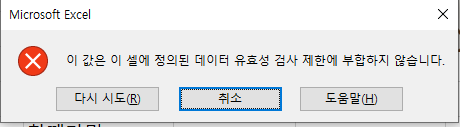 이렇게 오류 메시지를 설정하면 잘못 입력한 사람이 어떻게 데이터를 입력해야 하는지 이해할 수 있다.