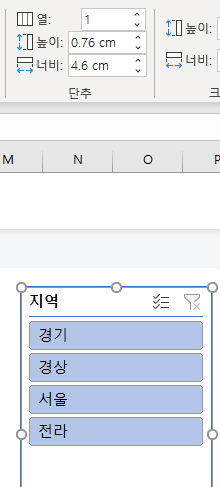 슬라이서 항목의 길이가 짧아 열을 늘리고 싶은 경우 슬라이서를 선택하고 슬라이서 탭에서