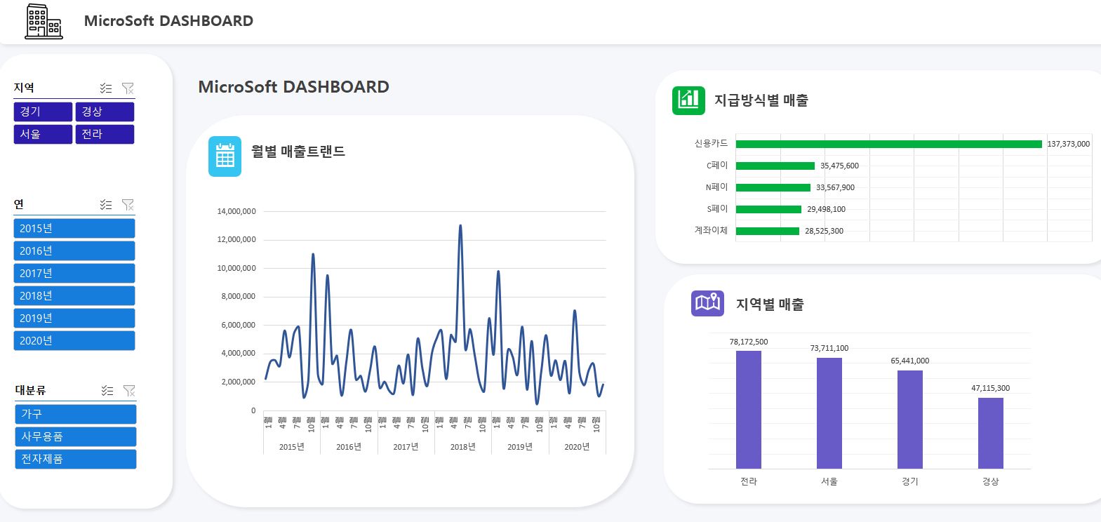 색상표, 도형 등 마스터 대시보드 엑셀 시트를 참고하여 대시보드를 완성한다.