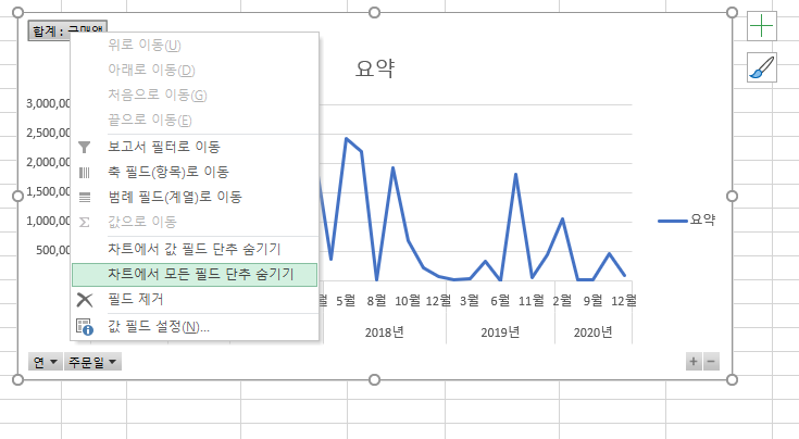이를 숨기려면 우측 마우스-차트에서 모든 필드 단추 숨기기를 클릭하면 된다.
