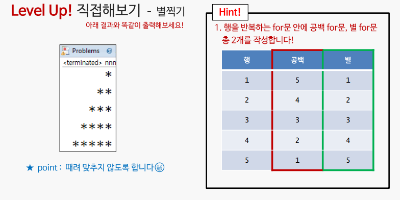 별 1개~5개 오른쪽 정렬하여 출력하기