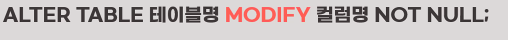 ALTER TABLE 테이블명 MODIFY 컬럼명 자료형 [기본값] [NULL여부];