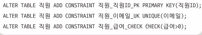 ALTER TABLE 테이블명 DROP CONSTRAINT 제약조건명;