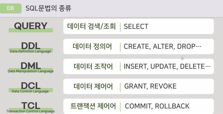 1. 데이터 정의어: 테이블 같은 데이터 저장소, 객체를 만들거나 수정