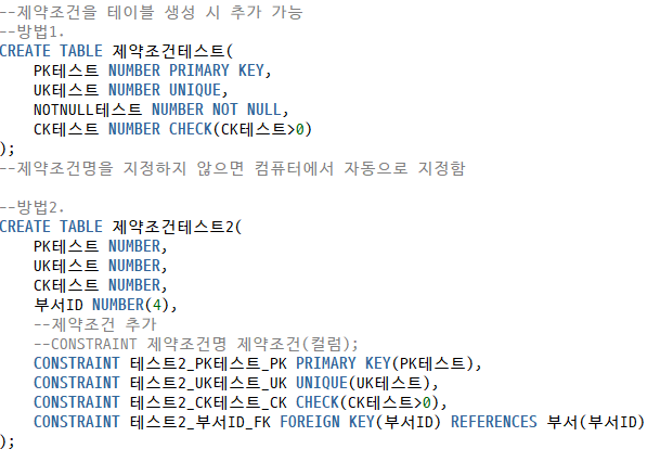 3. 제약조건: 테이블에 입력가능한 데이터를 제약할 조건