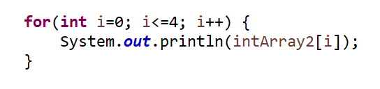 for(int i=0; i<intArray2.length; i++) {//반복문을 사용하여 배열의 모든 값 출력