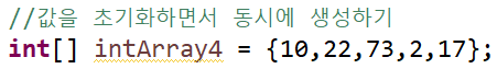 for(int i=0; i<intArray2.length; i++) {//반복문을 사용하여 배열에 값 저장