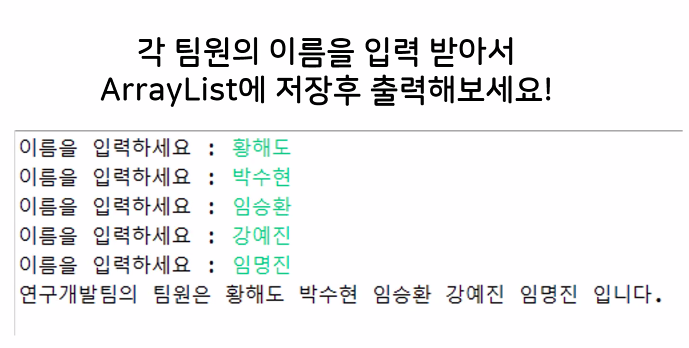arrayList.add(scan.next()); //arraylist에 팀원 이름 추가하기
