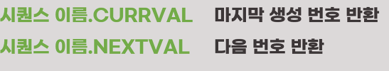 ● 시퀀스 생성: CREATE SEQUENCE 시퀀스 이름