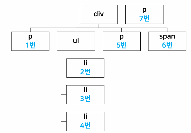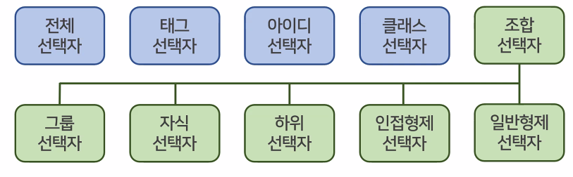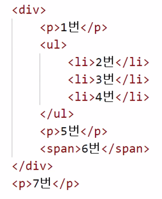 6)계층선택자: 특정 위치의 요소를 계층적 구조로 선택