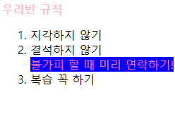 위에서 전체 색깔을 분홍색으로 지정해도 아래에서 노란색으로 지정하면 노란색으로 바뀐다.