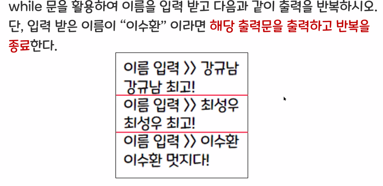 -조건식을 만족할 때 반복 →while 조건식: 실행문장
