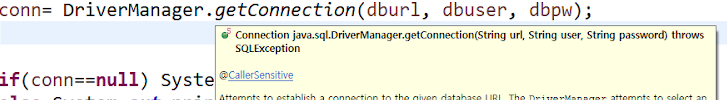 - DriverManager.getConnection(dburl, dbuser, dbpw);