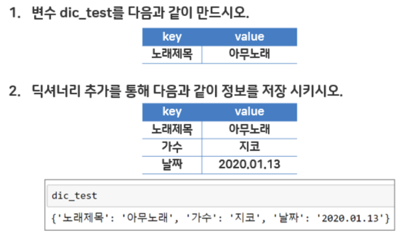 4. 딕셔너리 값 추가하기: 딕셔너리 변수명[key]=value