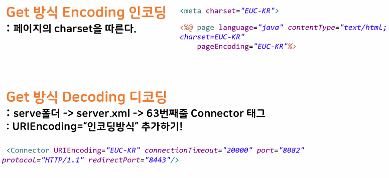-get방식의 경우: tomcat 9.0버전에서 한글 인코딩이 기본값으로 설정되어 있어서 별도로 지정할 필요가 없다.