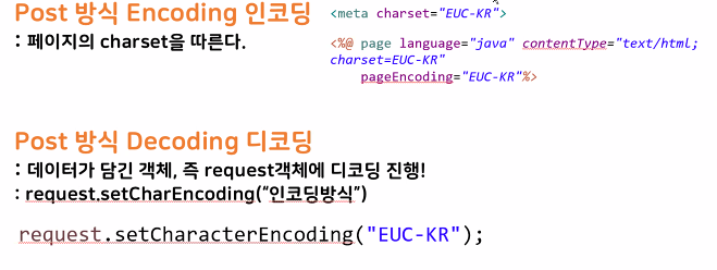-post 방식의 경우: 데이터를 보내는 곳의 인코딩 방식과 데이터를 받는 곳의 인코딩 방식이 같아야 함