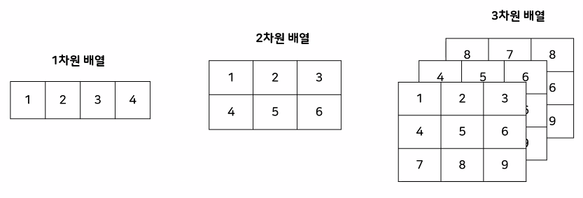 ● 배열의 차원 확인: 넘파이배열명.ndim