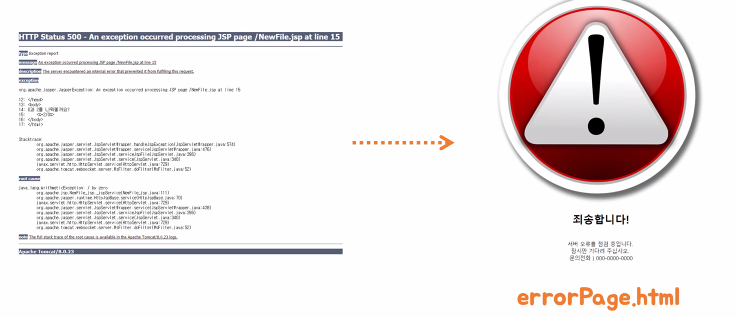 JSP→ page 지시자 작성<%@ page errorPage="./Ex06_errorPage.html" %>
