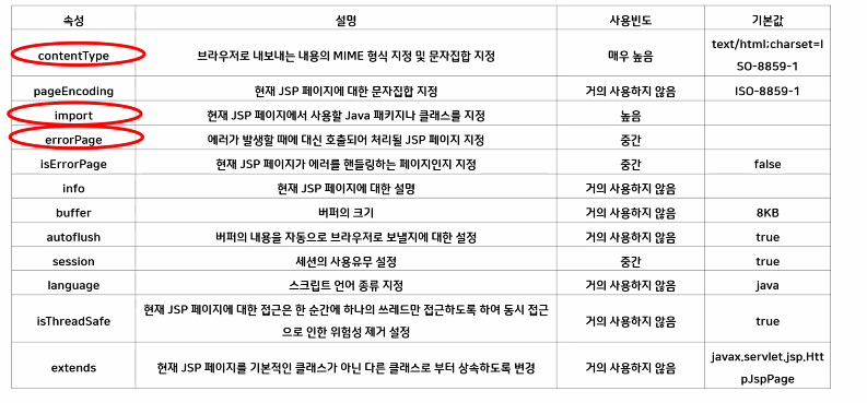 ①page 지시자: JSP의 환경설정(전체적인 속성 지정)
