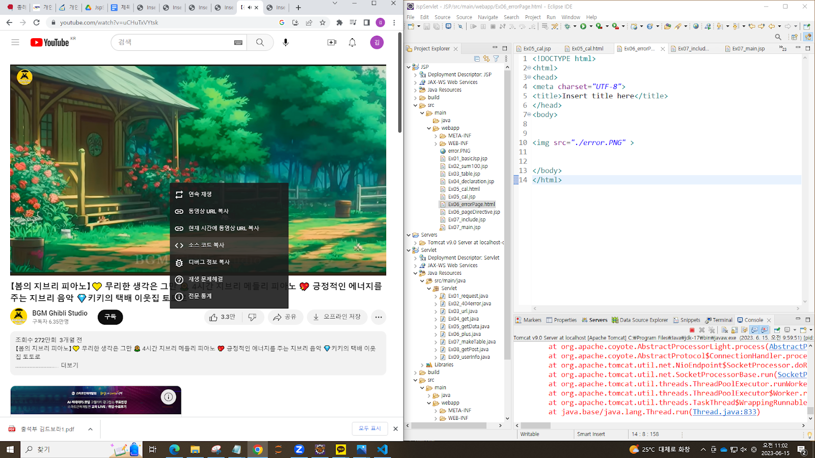 유튜브 영상 페이지 출력: 원하는 영상-소스코드 복사-jsp에 붙여넣기-실행