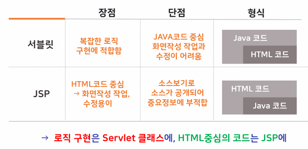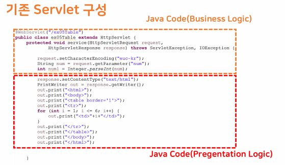 -프로그램이 복잡해지면 Servlet을 통해 출력되는 HTML페이지를 상상하기 어려움