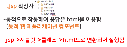생성하여 Web browser에 돌려주는 Java 기반의 스크립트 언어→서블릿의 일종으로