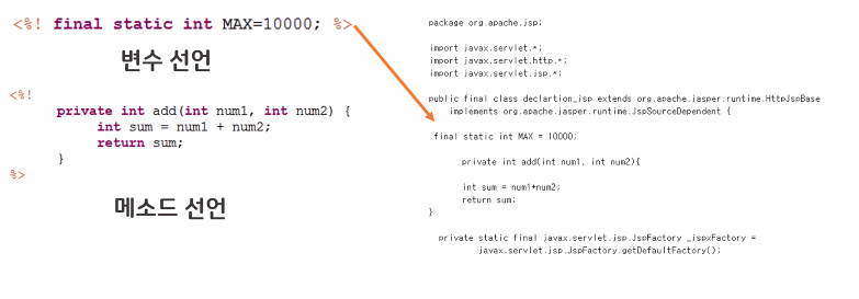 -선언문이 작성되는 부분은 JSP에서 변환된 서블릿 클래스