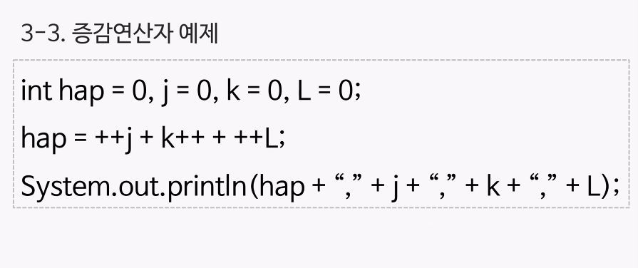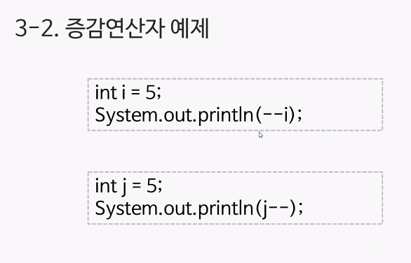 3 . 증감연산자(단항연산자): 변수에 저장된 값을 1 증가 혹은 1 감소