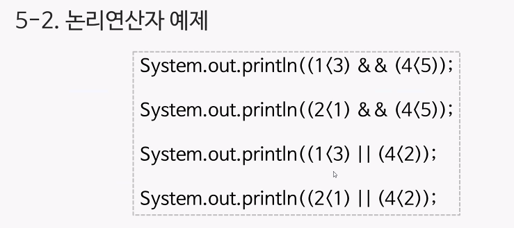 - 논리연산자: 비교를 2개 이상 해야 할 때