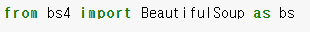 3. html 문서 객체화: bs(html 문서, ‘가공방법’) 예)soup2=bs(res2.text, ‘lxml;)