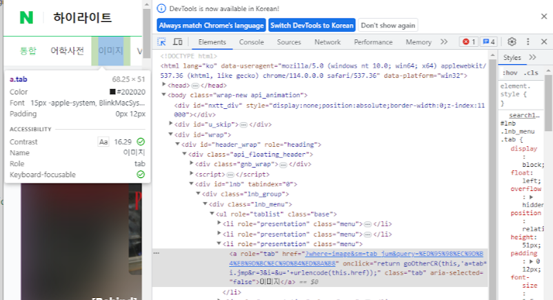 예)naver_img=soup2.select('a.tab')[2]