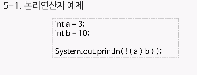 예)!TRUE= FALSE a=3, b=5, !(a<b) = false