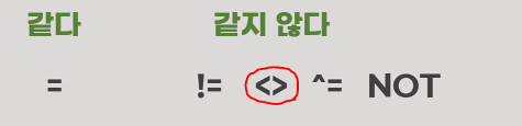 4. 등가 비교 연산자(=, !=, <> ^=)