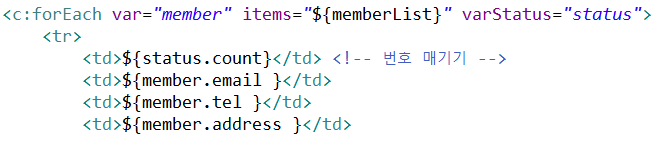 - EL 표현식, JSTL 사용하기, MemberDAO import하기