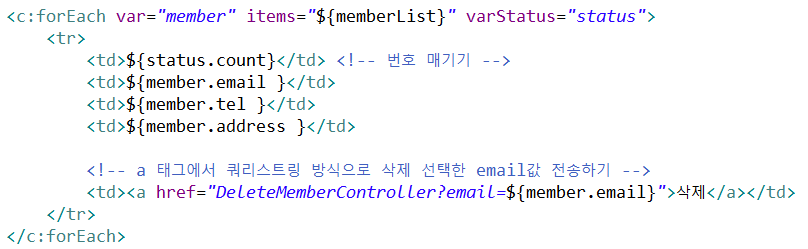 -[DeleteMemberController]로 선택한 email값 전송하기: 쿼리스트링 방식
