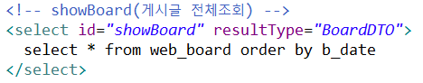 - sql 실행하기: ArrayList boardList=(ArrayList)session.selectList("showBoard");