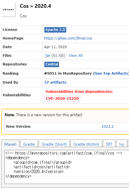 파일업로드하는 라이브러리 cos.jar(2020.4) pom.xml에 추가하기