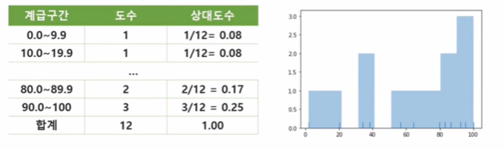 - 히스토그램: 도수분포표를 그래프로 나타낸 것