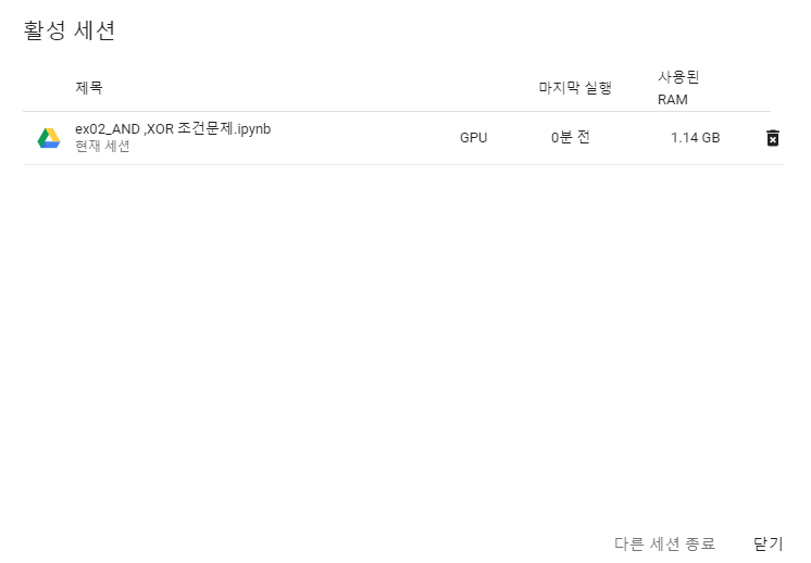 - 세션 종료: 런타임-세션관리-삭제 버튼