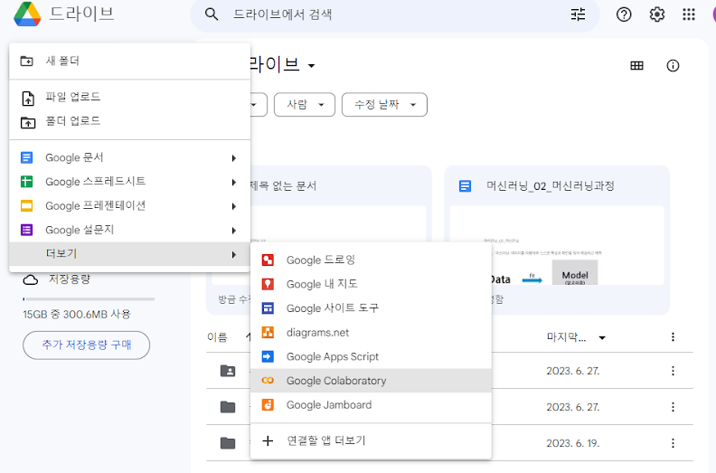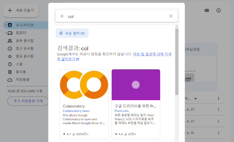 - 구글 드라이브-새로 만들기-더보기-연결할 앱 더보기