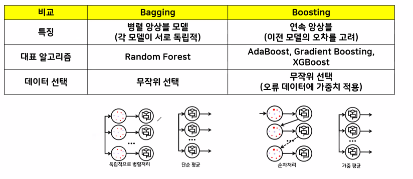 - 앙상블 모델의 종류: Voting, Bagging, Boosting