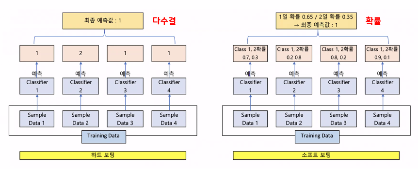 - Hard Voting(다수결)/Soft Voting(확률)