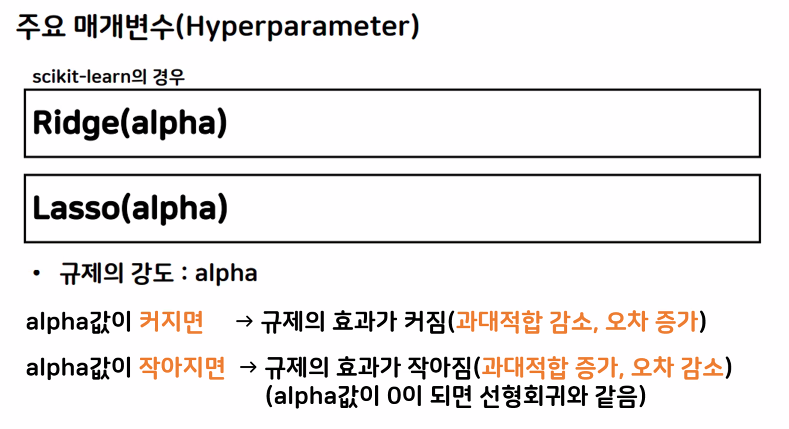 - 선형회귀모델은 하이퍼 파라미터 조절을 할 수 없음