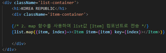 - map함수와 props 기능 활용하여 [Item.jsx]로 list state 값 전송